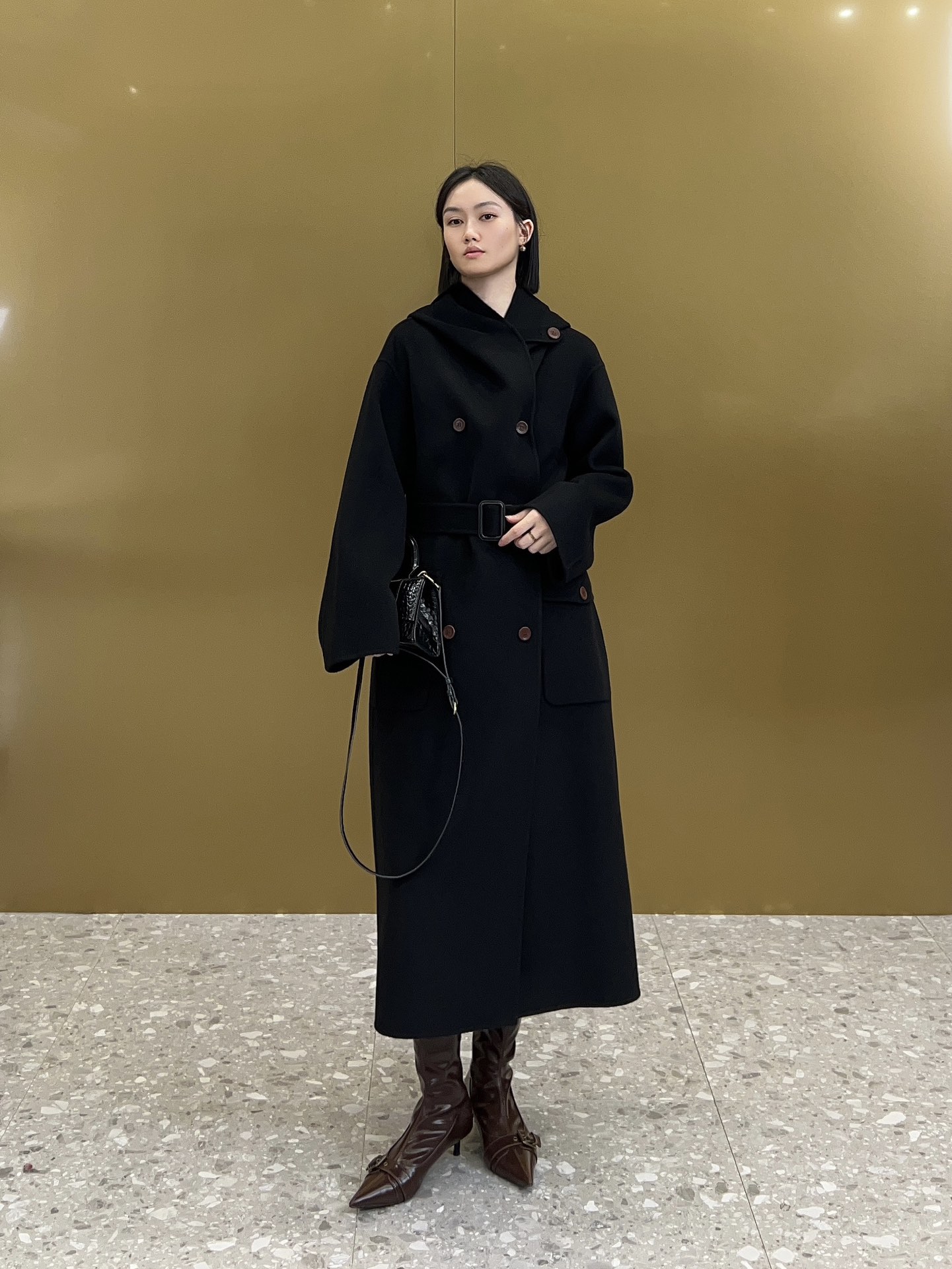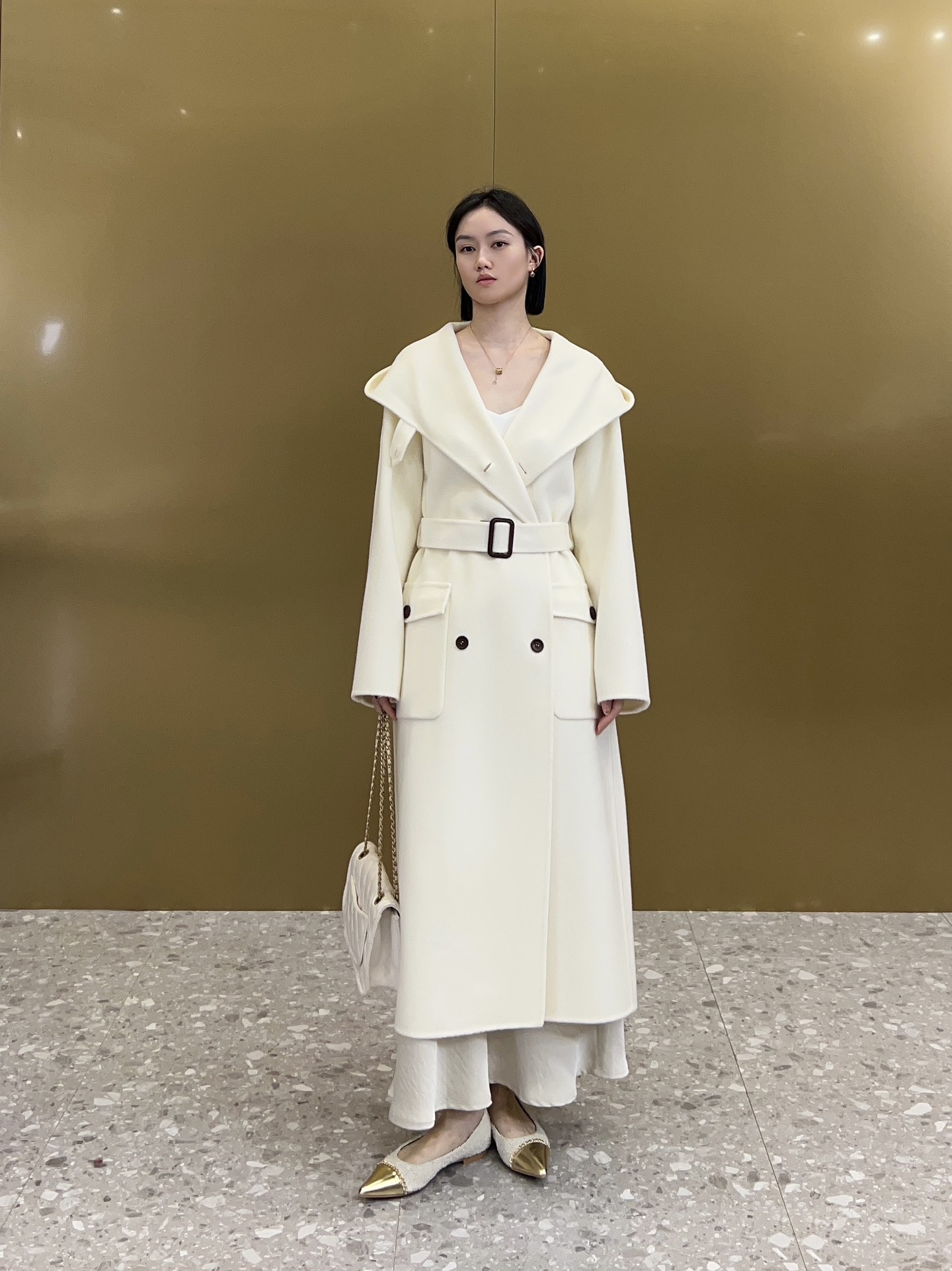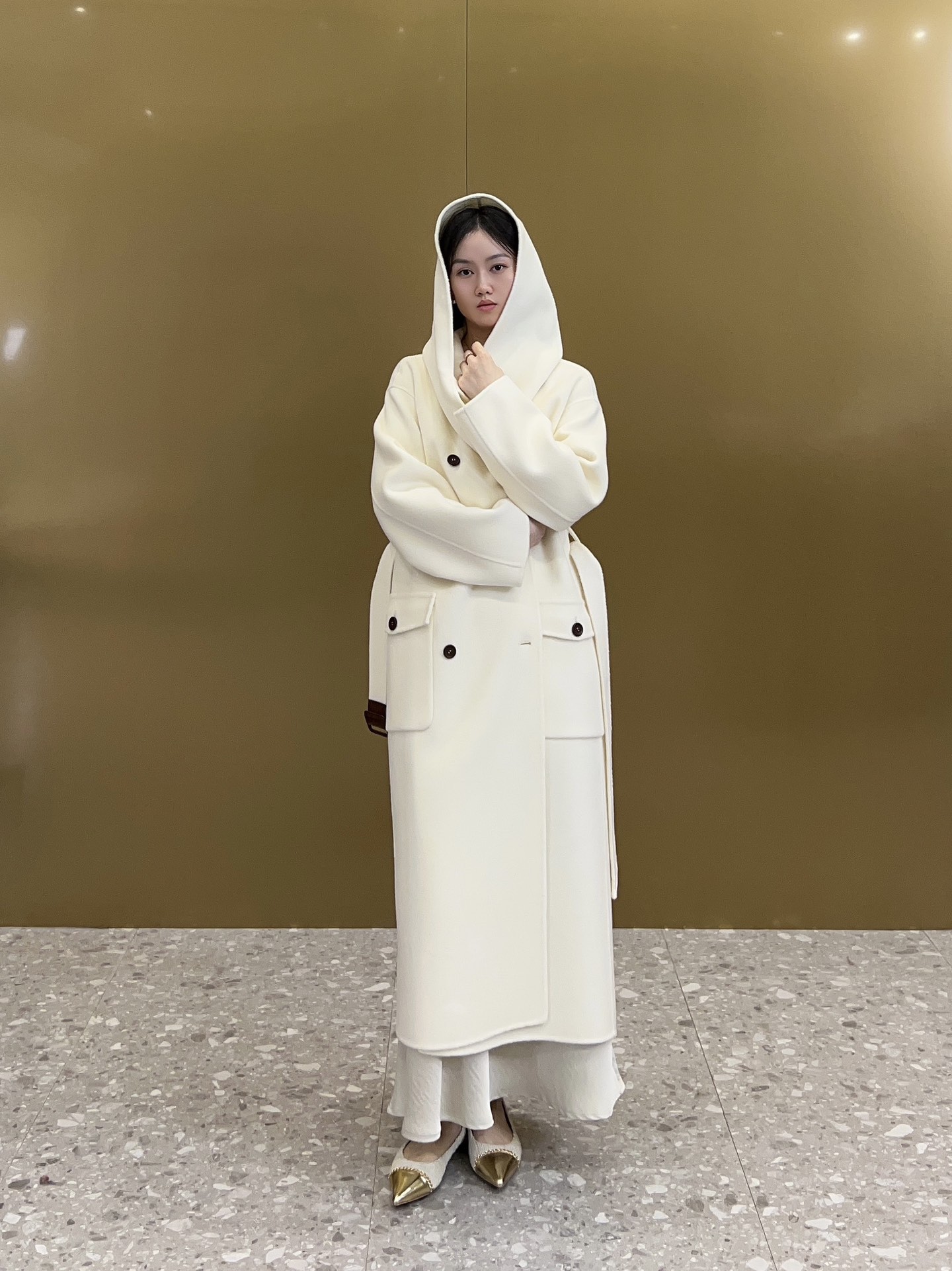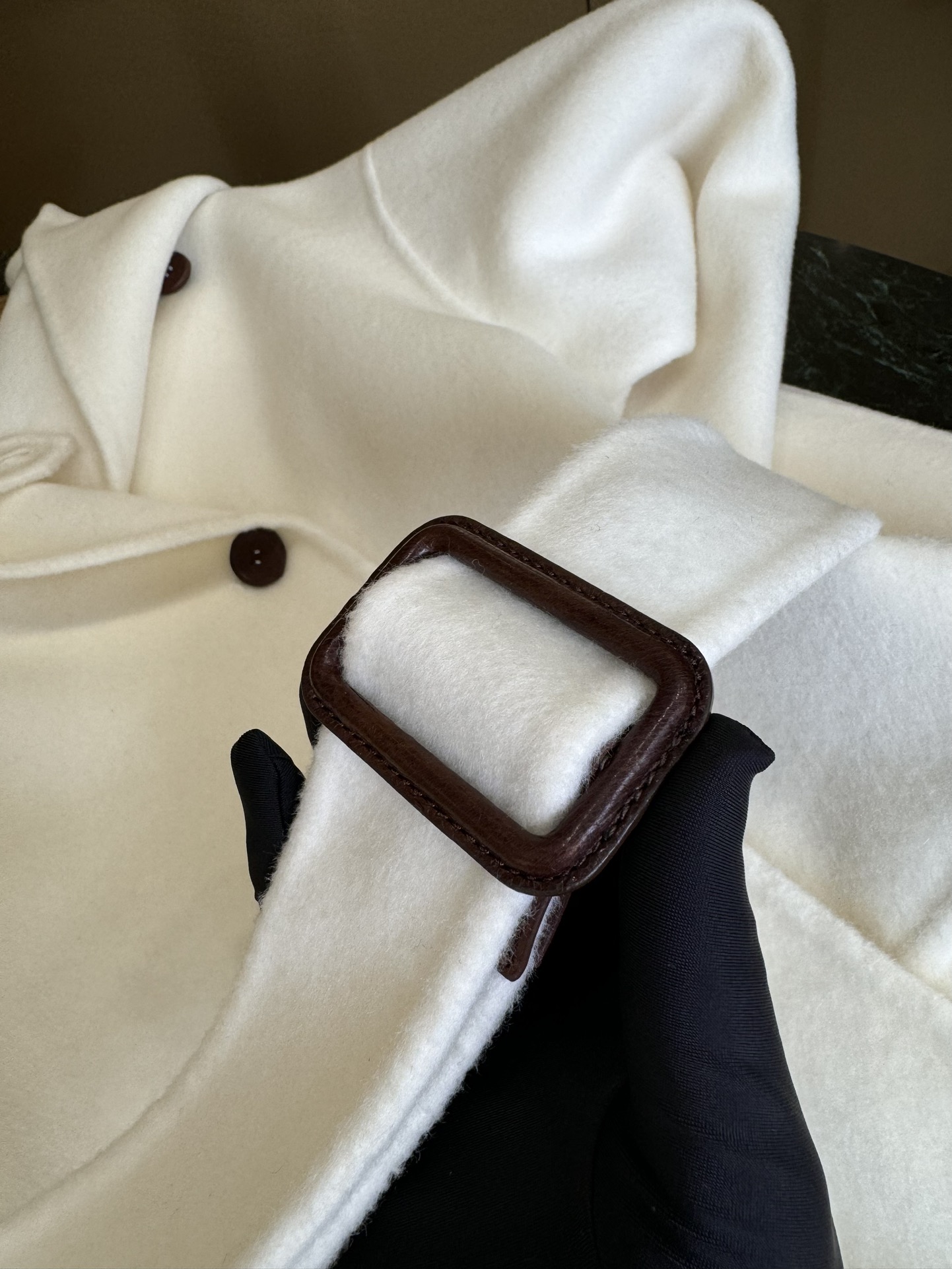 캐시미어 소재 벨트 버클은 양가죽을 베이스로 하고 버클은 모두 양가죽 소재이며 유럽 嵿급 기모 공법으로 제작되어 더욱 질감있는 캐시미어 코트의 드롭 소매형, 클래식한 박음질, 수작업으로 제작된 히든 사이드 포켓으로 우아하고 스타일링감을 잃지 않으며 커스텀 원단, 천연 일광 아래에서 양모 광택감과 섬세함을 연출할 수 있으며, 상체 터치감 융털이 곱고 피부 친화적이며, 드롭이 있어 편안합니다.